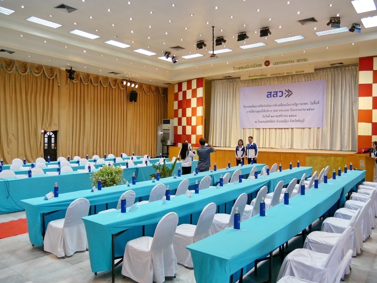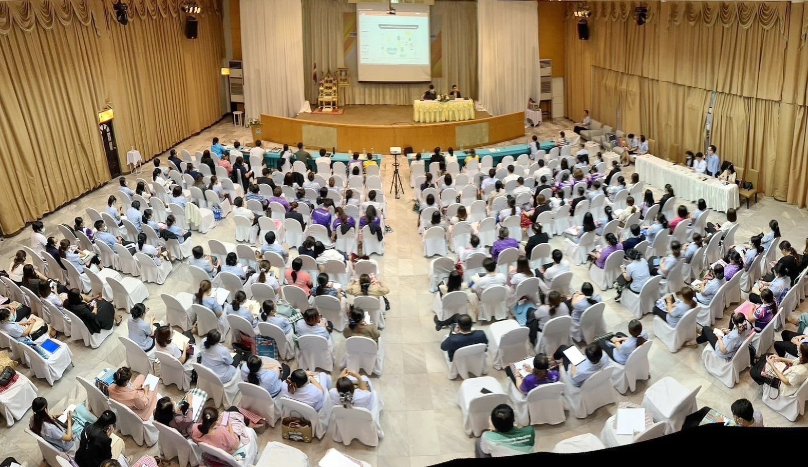- โต๊ะวิทยากร โต๊ะผู้เข้าร่วมงาน โต๊ะสังเกตุการณ์ โต๊ะลงทะเบียน